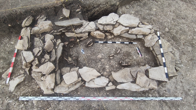 “A supposed male warrior, 30–35 years old, was buried on a stone slab. Near the lower part of his body we discovered remnants of a horse skeleton. The neck of an amphora was also found nearby. Judging by the nature of the finds, the burial was plundered in ancient times, since among the artifacts there are only parts of a funeral rite and a disturbed human skeleton,”