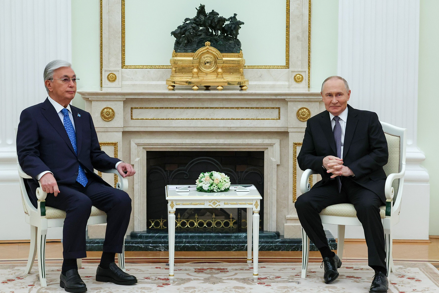 Russian President Vladimir Putin and his Kazakh counterpart Kassym-Jomart Tokayev are holding talks in the Kremlin.